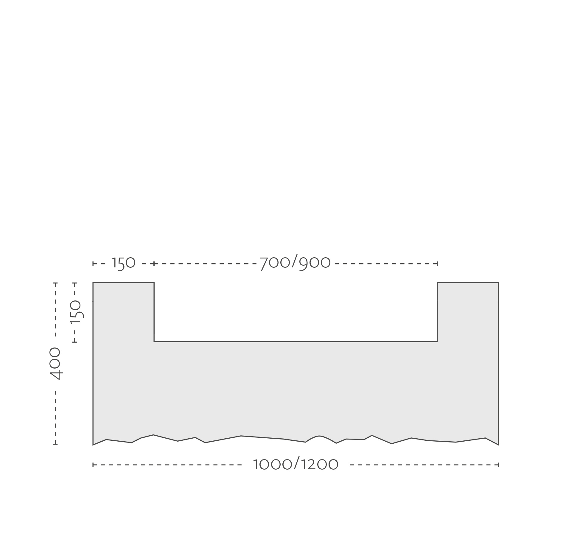 Die Stufenbreite beträgt jeweils 400 mm, die Stufenhöhe 150 mm.