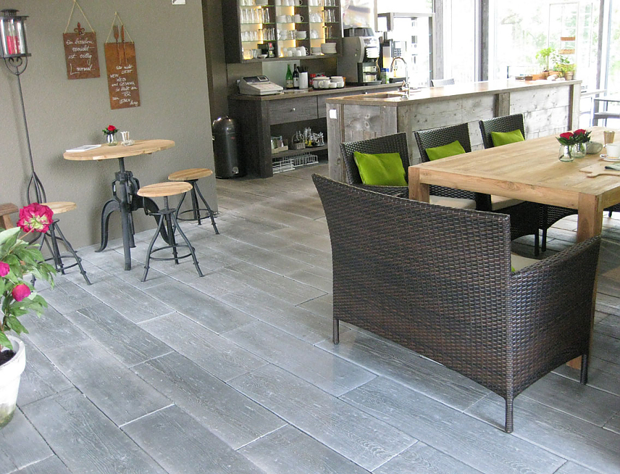 Da muss man schon zweimal hinschauen: Rissige Struktur und typische Maserung machen diese Steinelemente rustikalen Holzplanken zum Verwechseln ähnlich. Doch sie sind witterungsbeständig, pflegeleicht und splitterfrei.